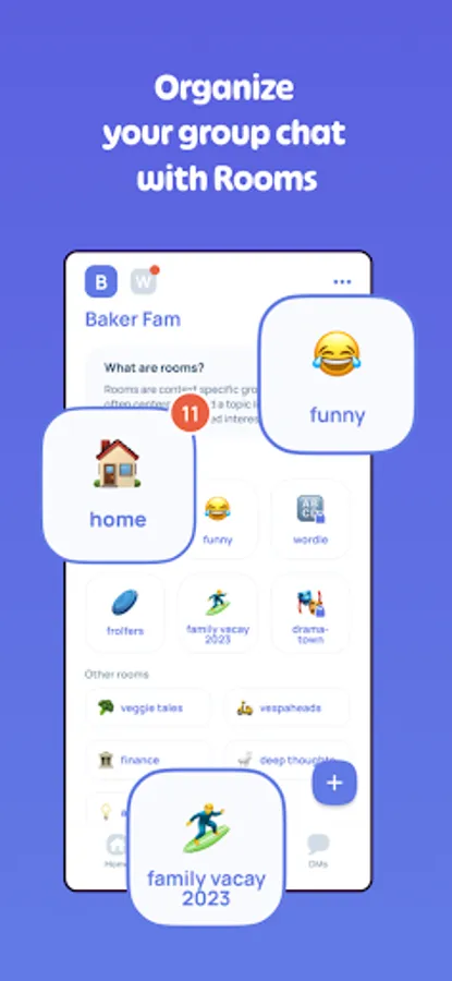 The first messaging app designed for families–HeyFam is the only app with topic-focused rooms and direct messaging where you can share photos, videos, GIFs, and messages across any device.