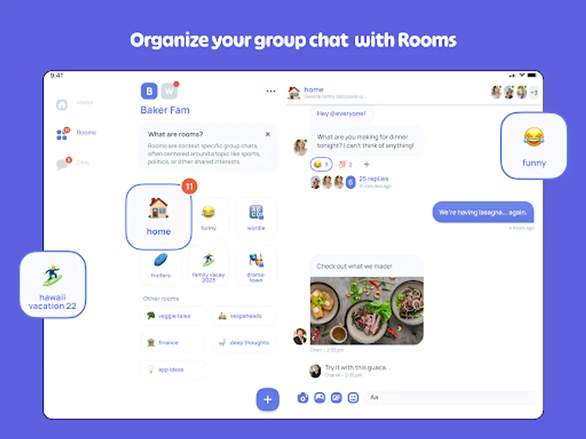 No more endless scrolling to find a shared recipe or interrupted conversations. Gather shared photos and more.
