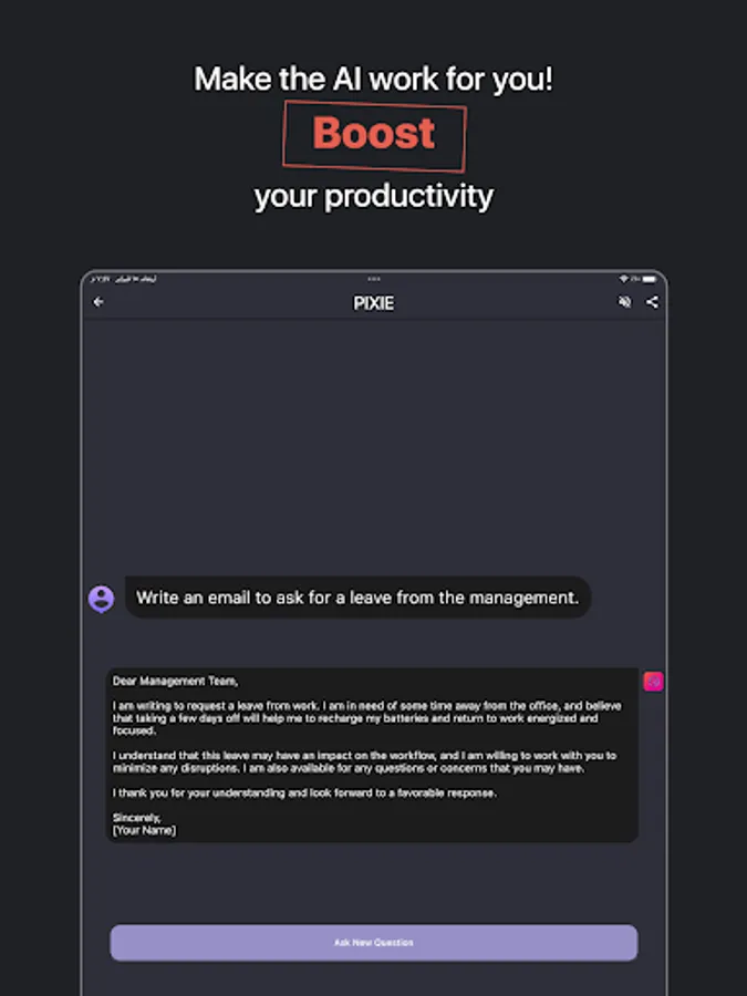 Powered by the most advanced GPT-3, GPT-3.5, GPT-4 models, including Ada, Babbage, Curie, and of course Davinci, Pixie is the most powerful and fully optimized AI assistant that can improve your work productivity, creativity and save you a lot of time.