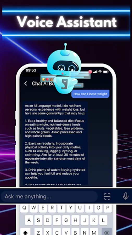 One of the great things about Chat AI Bot is its versatility. Whether you're looking for a chatbot to help you with your work πΌ, or simply want a fun way to pass the time β°, our app has something for everyone. You can even use our chatbot assistant to learn new things π, such as a new language π£οΈ or a new skill π€ΉββοΈ.