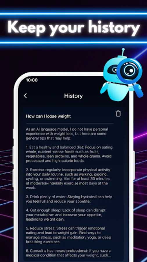 Overall, Chat AI Bot: Chatbot Assistant is a powerful and versatile app designed specifically for the US market πΊπΈ. With its advanced AI-powered chatbot assistant, customizable interface π¨, and powerful search functionality π, Chat AI Bot is the perfect solution for anyone looking for a seamless and personalized chat experience π¬. Download it today and start chatting! π»