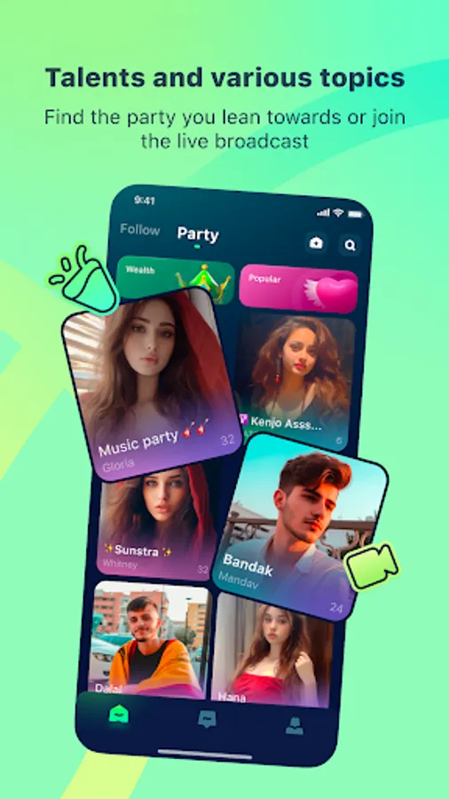 Sing along, engage in thrilling PK battles, and explore our numerous fun voice rooms with your friends. It's time for a virtual party!