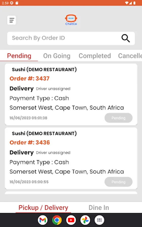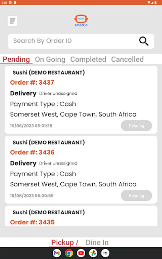 Business owners can use this app to receive order notification, manage orders, book drivers and manage product/table reservations for their business on the chatco website