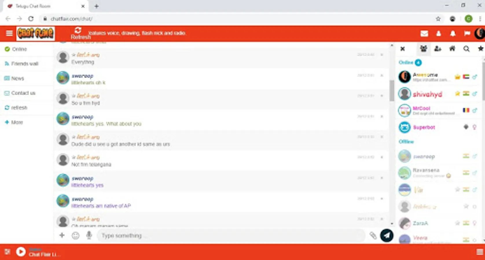 Free chat app without any registration. Easy to use and operate with lots of features and entertainment where you get many users from world wide. This chat room is made for all boys and girls who are above 18 age.
