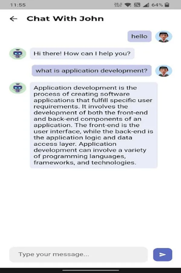 With this app, you can chat with our intelligent bot and get instant, impressive answers to all of your questions. Whether you need help with a specific problem, want to learn more about a certain topic, or just want to have a conversation, our chatbot has you covered.