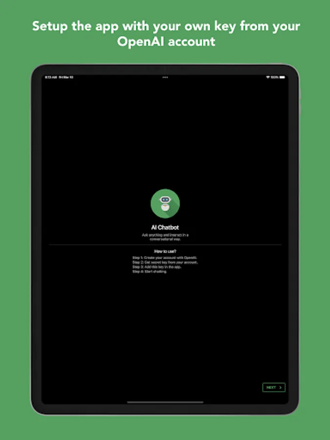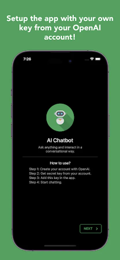 This is a Bring-Your-Own-key app and hence requires you to add your own secret key (or API key) to work. You can create your account with OpenAI by visiting https://platform.openai.com and obtain your secret key.