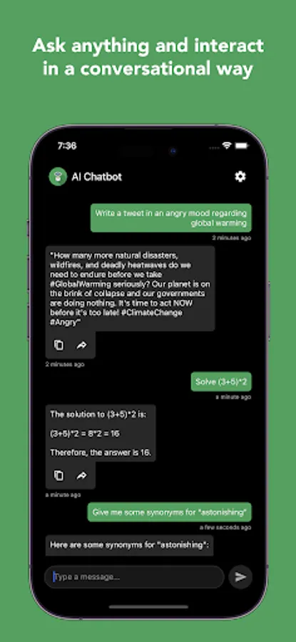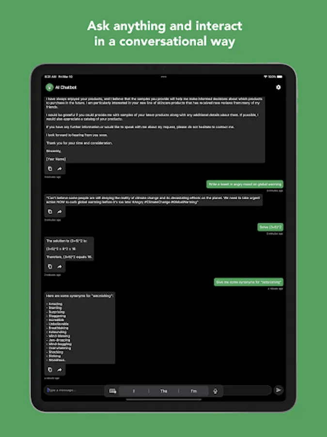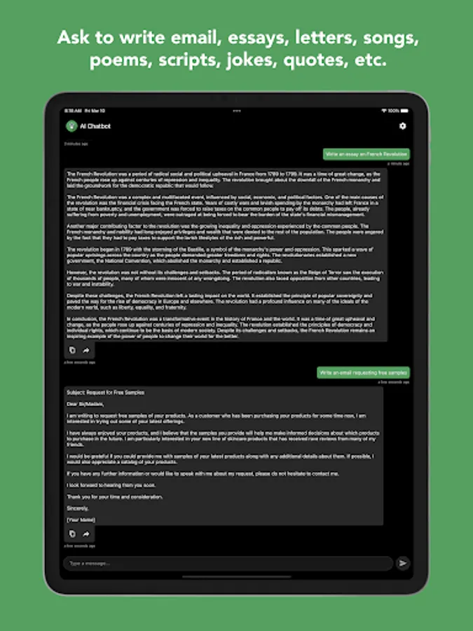 The ultimate AI assistant app to write essays, emails, stories, code in any language, captions, hashtags, promotional text, songs, poems, jokes, quotes, video scripts, etc., solve maths, suggest ideas, generate tweets, explain code and concepts... and much more!