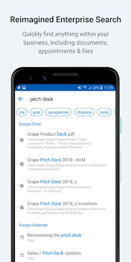 Grape is a business communication solution with a deep service integration, that makes all the distributed data from different external cloud services instantly available - right as you type.