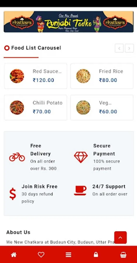 We New Chatkara at Budaun City, Budaun, Uttar Pradesh, offers delicious and mouth-watering food and beverages in its vegetarian food menu. Our menu includes North Indian, South Indian and varieties of chinese dishes. Every dish in our menu is of the fines.Our food is delicious and the presentation is beautiful, the service is impeccable and the prices are just right. The great ambiance, exceptional food, and excellent service make for a remarkable dining experience at our restaurant. Using quality fresh ingredients, we have crafted an extensive menu of dishes, offering everything from starters to beverages.