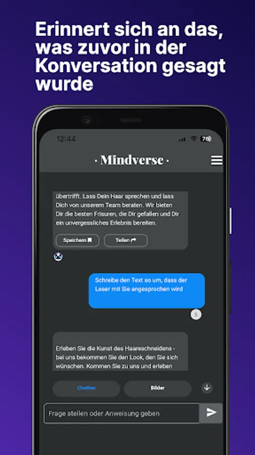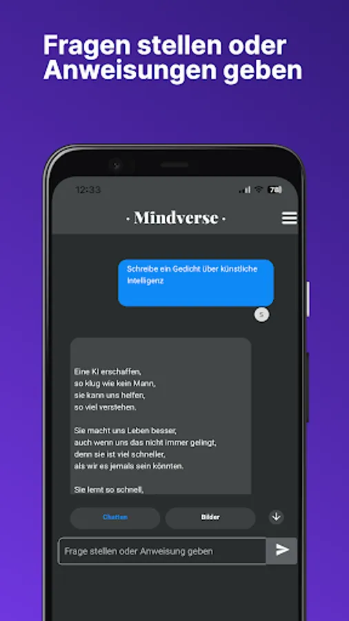 ChatKI is a revolutionary AI platform that allows you to talk to an intelligent chatbot. You can generate ideas, revise content, have AI images created, have complete texts written or simply gather inspiration.