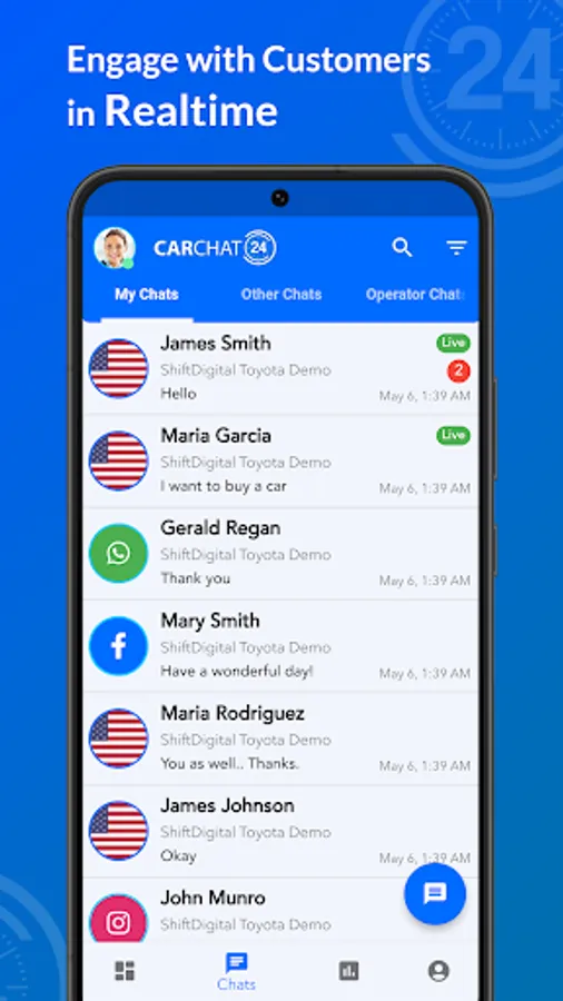 Connect with your online vehicle shoppers who reach out via chat, SMS text or even Facebook Messenger. The top-performing chat provider has released the absolute best chat app in the auto industry. This live chat app is incredibly robust and puts a powerful communication tool in the hands of dealer staff. It has been custom engineered for any Android based phones to harness the power of SignalR technology, with all the key functions of the desktop chat operator console.