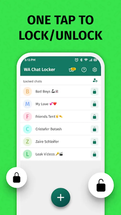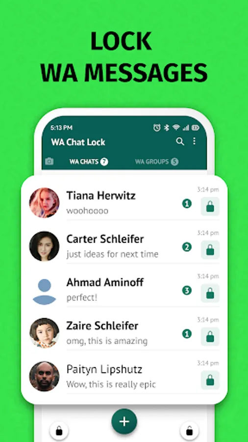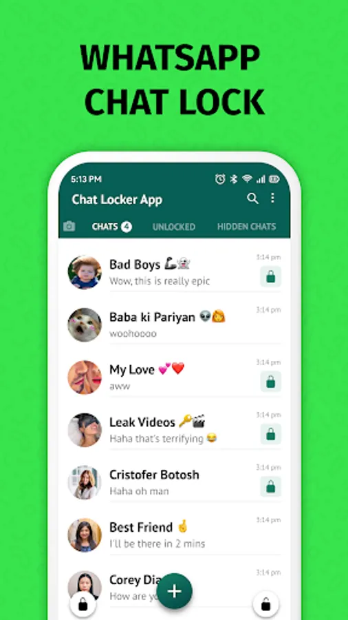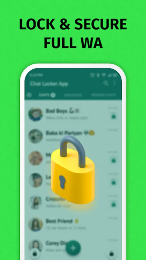 Lock group whatsapp chats using app locker. Hide private chat with WhatsApp locker app for android. Lock chats of friends using Whats Chat App. Protect media files in WhatsApp chats using pin or fingerprint lock. Chat locker for WA app is the best app to lock chats.