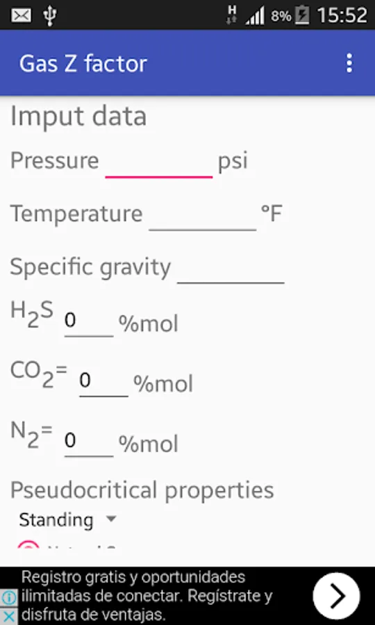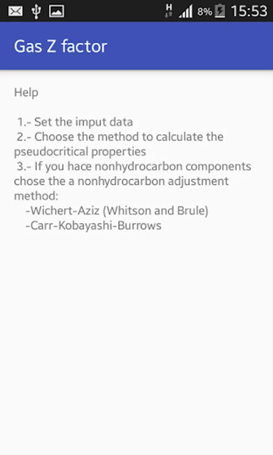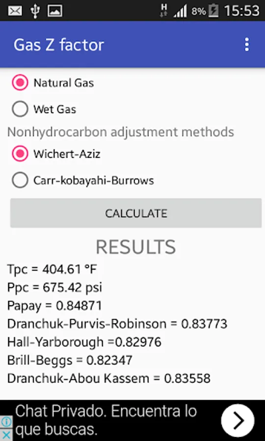 This app calculates the gas compressibility factor Z with five differents correlation with: