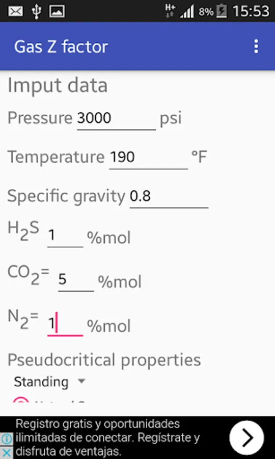Using three parameters: pressure, temperature and gas specific gravity it calculate the pseudocritical properties with the Standing correlations that expressed mathematicaly the graphical correlation of Brown et al.
