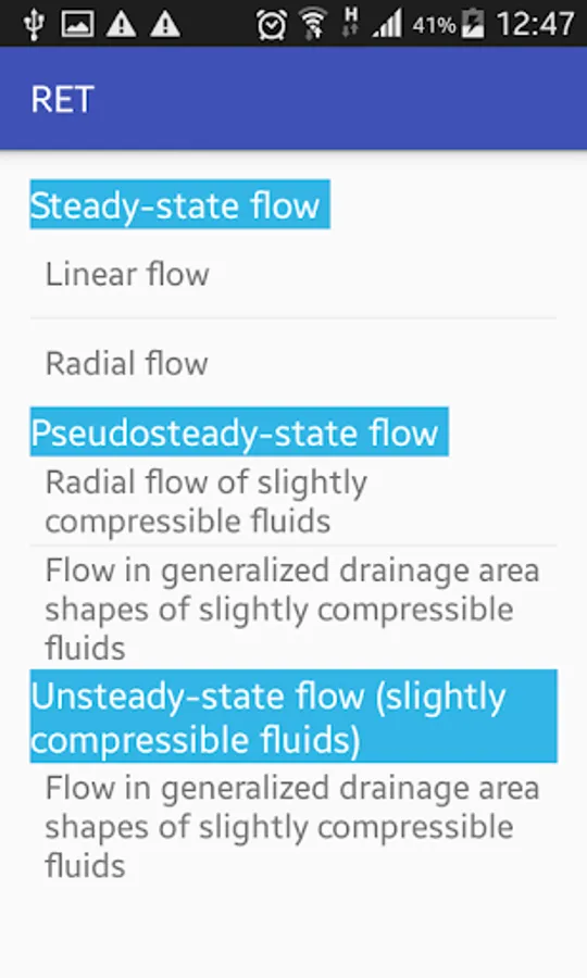 With RET you can calculate rate or flowing pressure in the three types of flow regimes: