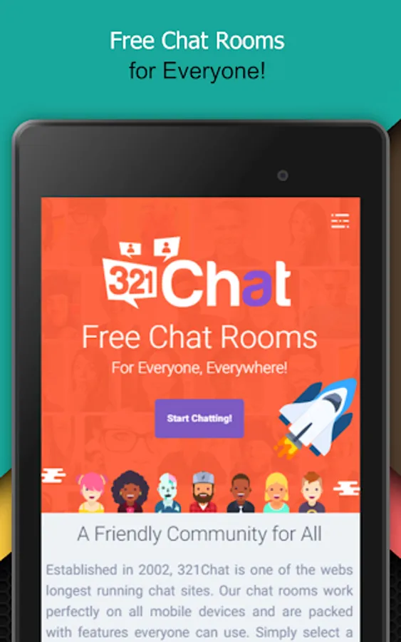 Operating since 2002, 321Chat offers free chat rooms for all ages, sexual orientations and ethnicities. Teen, adult or senior; gay, lesbian or trans, everyone is welcome!