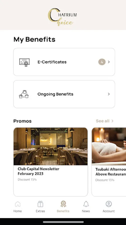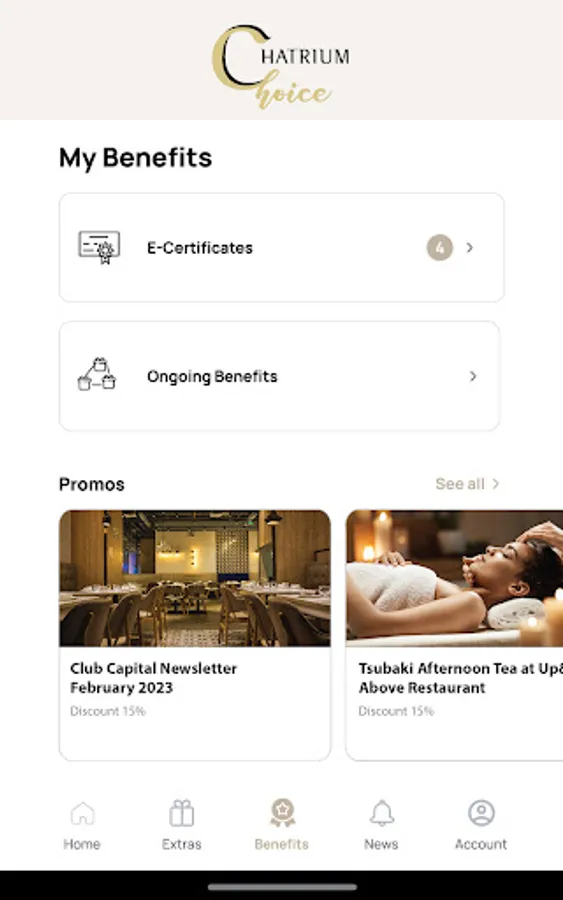 1. My Benefits - Vouchers or certificates available to use or redeem (once redeemed, app will show the voucher as 'Used')