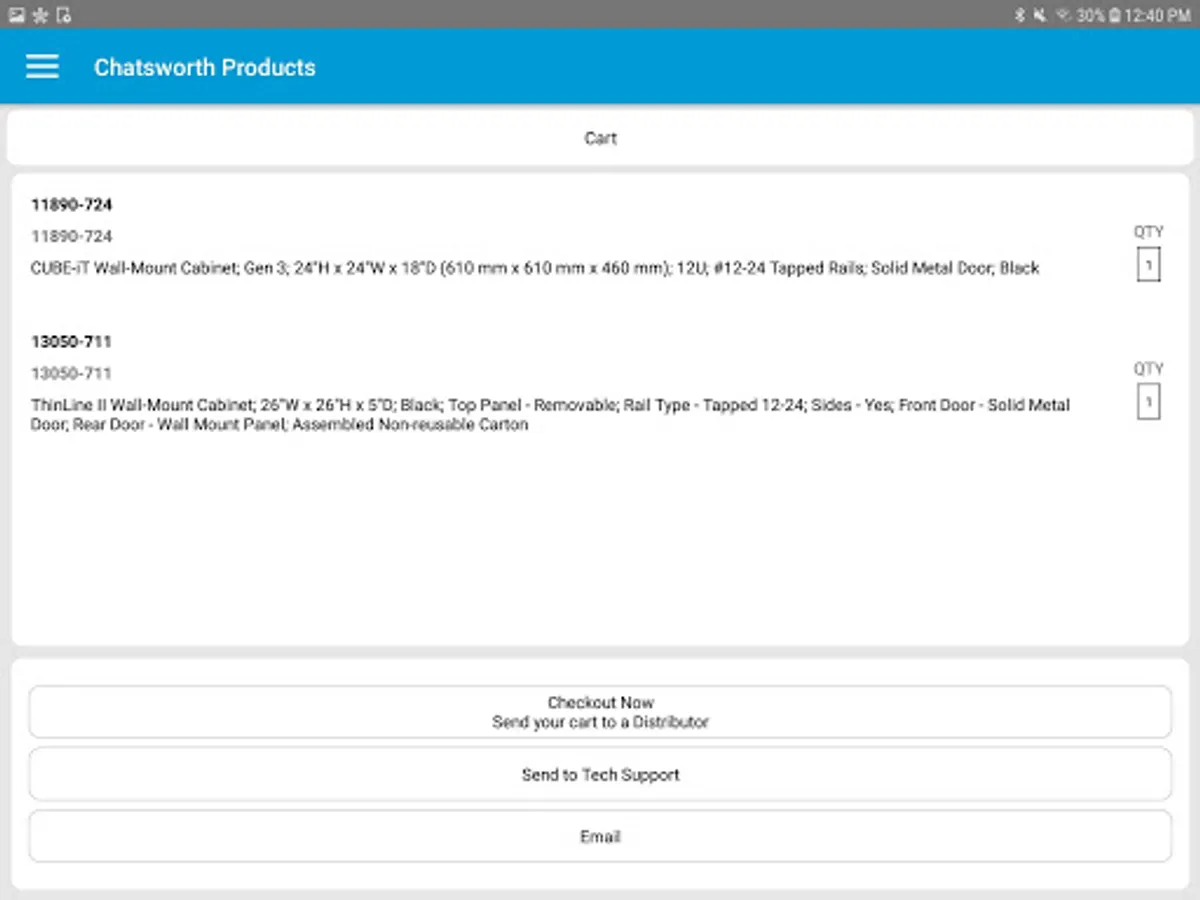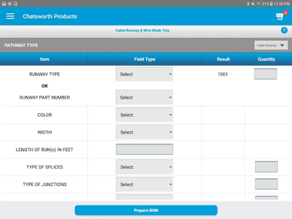 Get started on the right path by quickly creating a bill of material (BOM) for your next project using CPI Pathway Products. First, select your preferred cable runway solution. Then you will be led through options such as width, length, color, type of splices and junctions. Once these have been entered, you will be presented with a BOM complete with part numbers, description, quantity, etc. An option is available to add additional part numbers such as server cabinets, eConnect PDUs, and other products. You then have the option to email your results to yourself or your customer, CPI’s Technical Support, or Distributor for ordering or verification.