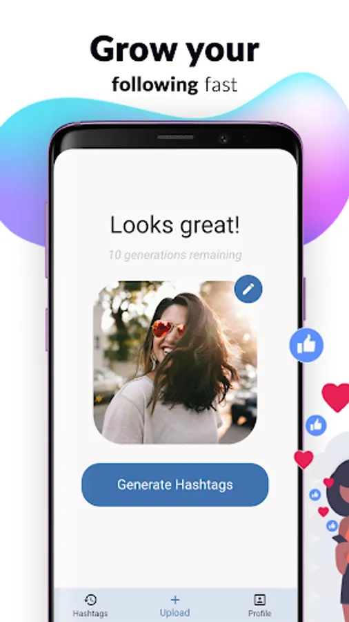 The hashtag generator application uses state of the art image recognition to analyze your image and give you a set of tailored popular hashtags that maximizes the amount of people that will see your posts on Instagram. You simply have to upload a photo in the hashtags app, and the hashtag generator will find the most followed and trending hashtags for your content. Increase the reach for every post with our powerful hashtag finder tool. #growth #follows #likes