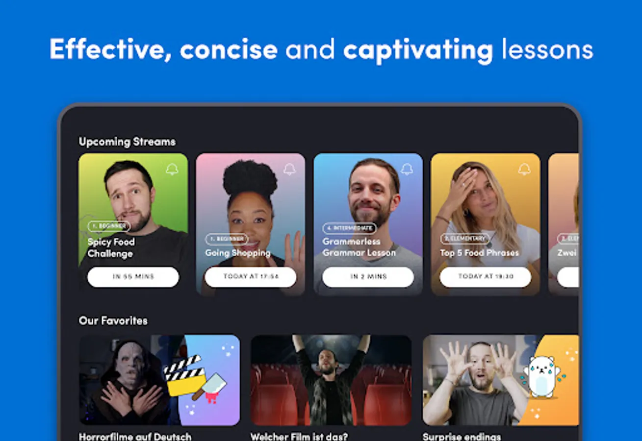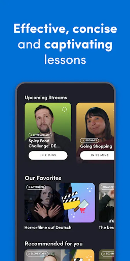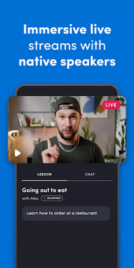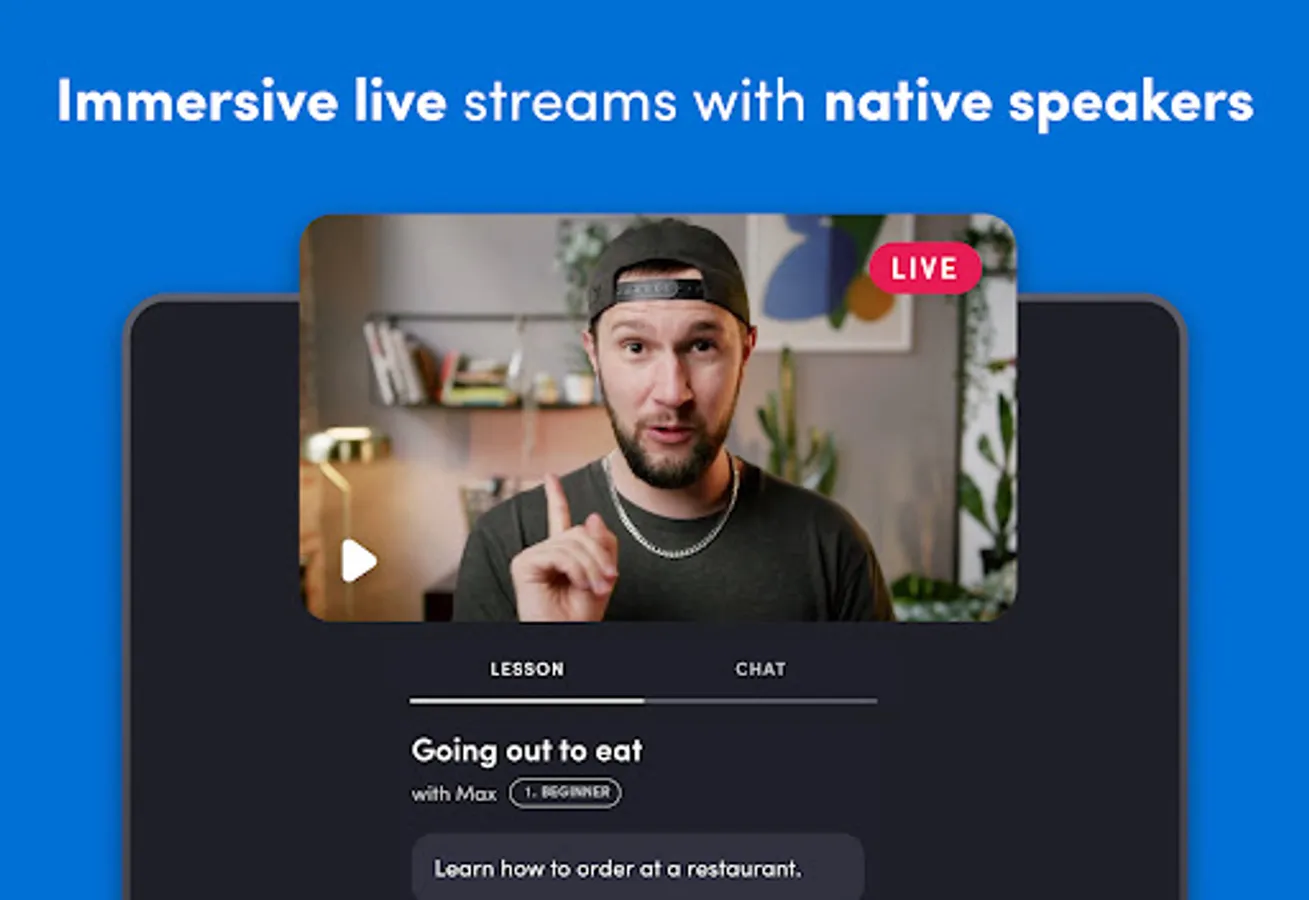 🧠Watch live and effective streams that are tailored to your level! It doesn’t matter if you are a beginner or have advanced knowledge, we offer interactive streams to improve your level in all the available languages in the app!
