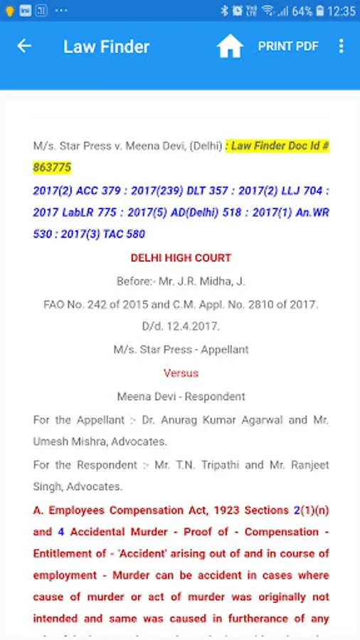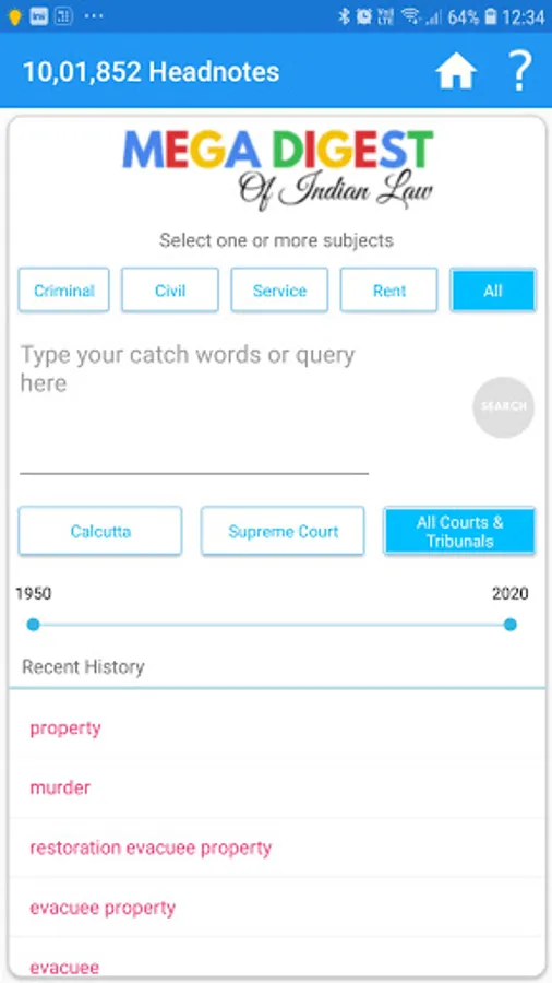 At the backbone of Mega Digest is the "Law Finder" India's biggest and the fastest law database since year 1950