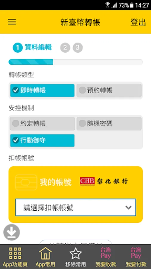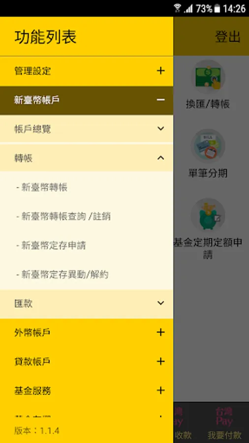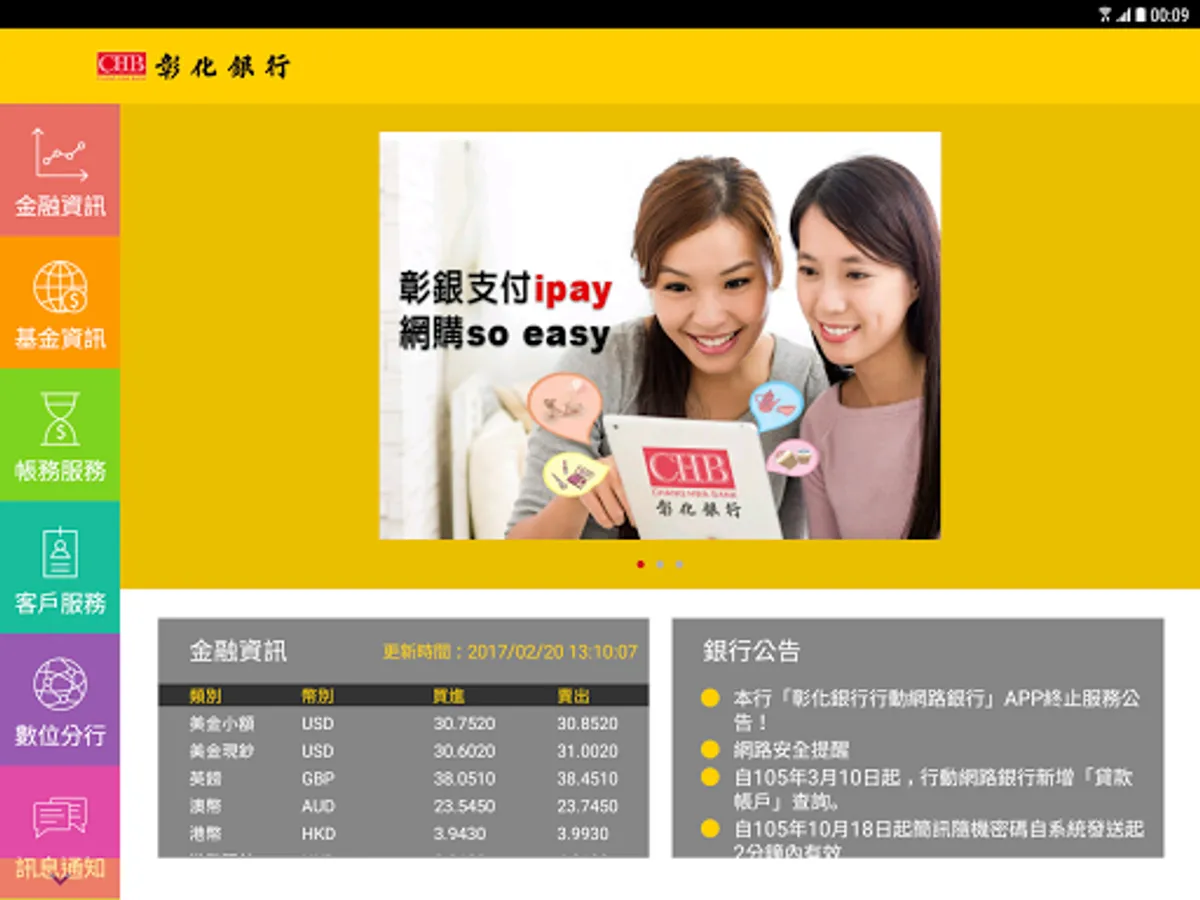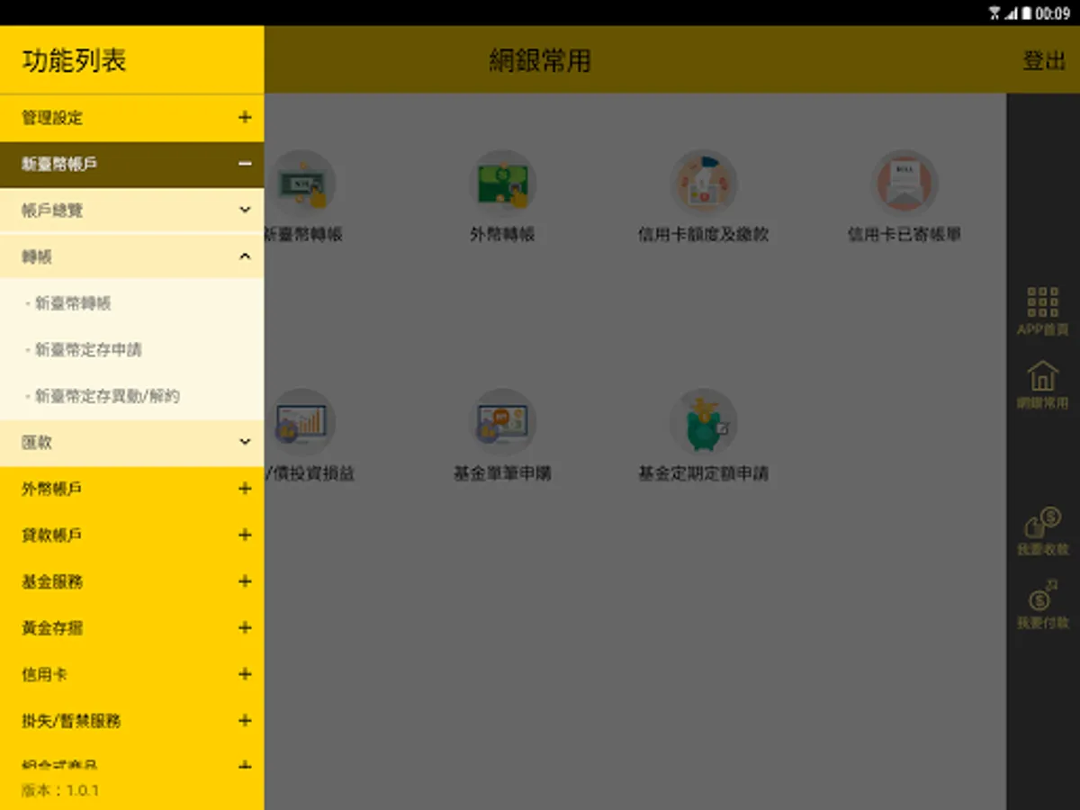 1.欲使用帳務服務須先申請個人網路銀行業務,並於個人網銀開啟行動網銀功能始得使用。