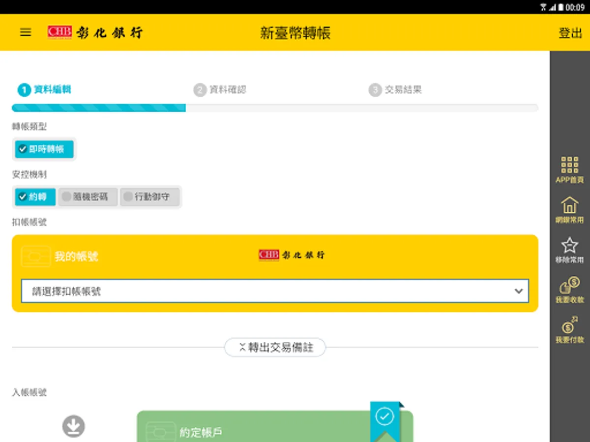 提供臺外幣轉帳及外幣結購售等交易,搭配「約轉」、「隨機密碼」或「行動御守」安控機制,交易安全又便利。