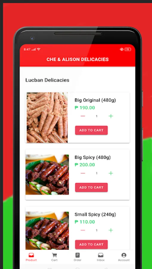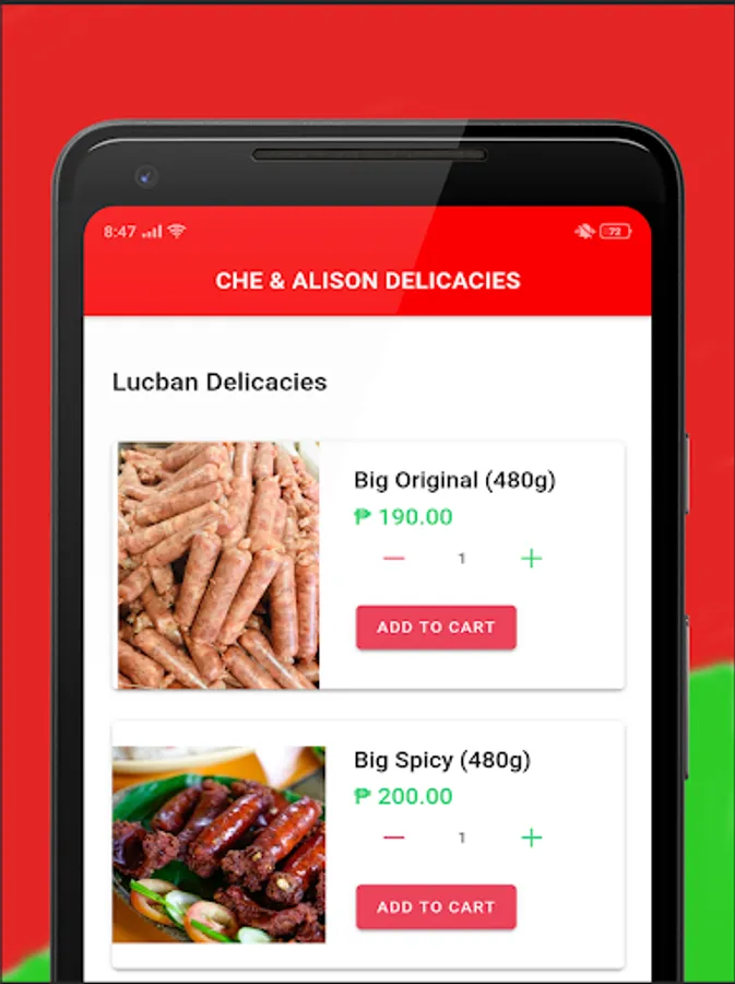 This is an android ordering app built specifically for Che and Alison customers. New Customers can also buy Che and Alison Hauz of Longganisa products by using their android application.
