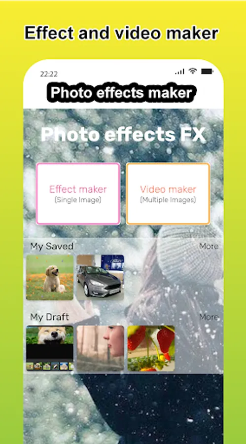- "Photo effects" is application to make your photos more lively and less boring with a lot of interesting motion effects. Photo effects create effect for pictures: