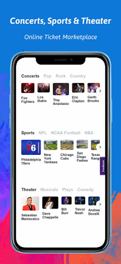 Event Tickets App is an one stop of some of the most popular sporting events in the country, including NBA, USTA, NFL, and NHL. We offer exclusive tickets to the most coveted Broadway shows, theatre tours, bands, artists, and event venues. As one of the biggest marketplaces for event tickets, you are guaranteed to find tickets to your favourite events, even the less popular ones.