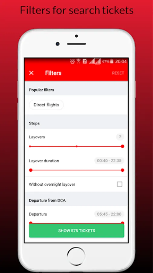 The software allows you to find cheap airline tickets and book them. To carry out the search for air tickets, you need to use the settings of the service. They allow you to compare prices for air tickets, airline selection, departure date. Modern cheap flights can be found online from your Android-device.