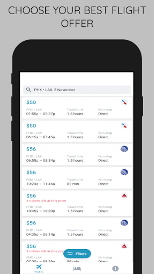 You can easily find the best price airlines here. So why pay more money for the same when you can find the best on the Cheap Flights app? Simple and easy to use. Buy flight tickets quickly with the best price available in the market. Also, get the best offers on last minute flights booking.