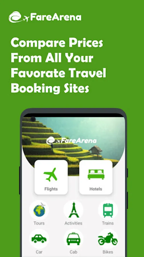 FareArena app helps you to find the cheapest flights and best hotel booking deals. With our real-time flight tracker feature, you’ll always have the latest updates about your itinerary. Search 500+ travel websites instantly for the best price.
