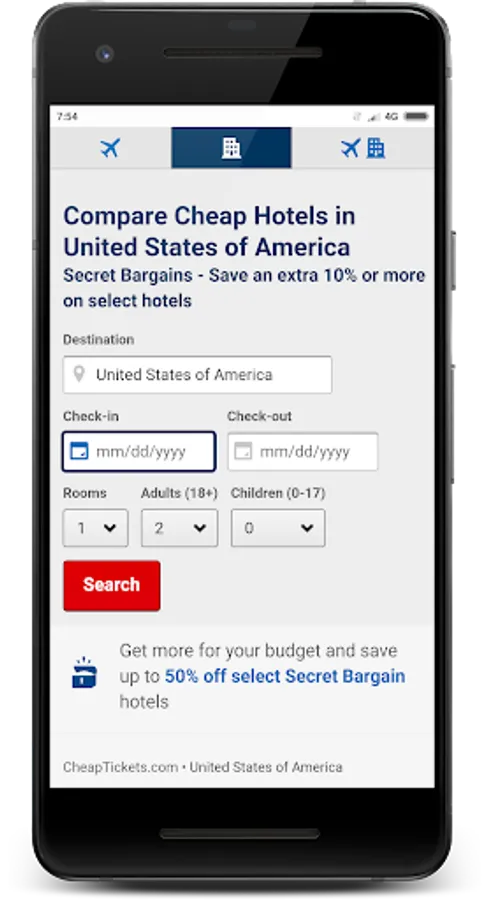 Are you in search of luxury cheapest hotel or room for your vacations trip or for business tour in United States of America? Solution for your problem lies in this Application Cheap Hotels USA. You can find any type of hotels from this Application. We have provided a list of Websites from where you can search and find thousands of hotels in USA. After installing this Application you can find many of hotels and rooms online with your finger tips.