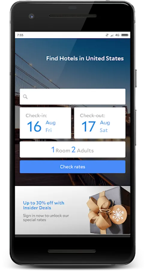 Find cheapest hotels in USA with comfortable environment and best deals for you and your family. Luxury and Five Star Hotels with one, two or three bed rooms are available at lower prices. Don't waste your time and download our App to find the best Hotels and Rooms for rent in any City of USA.