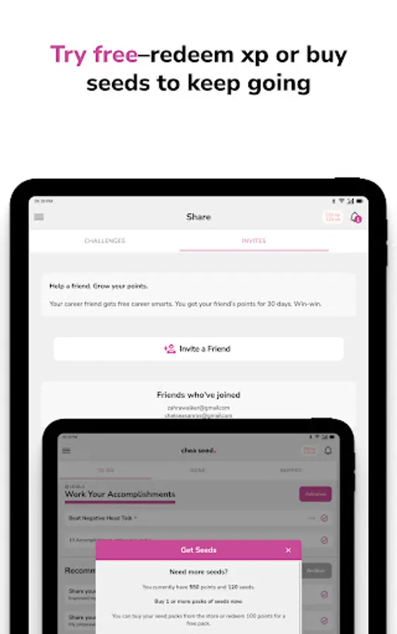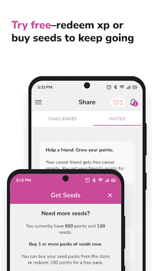 * Redeem experience points (xp) or buy seeds, our cool in-app currency