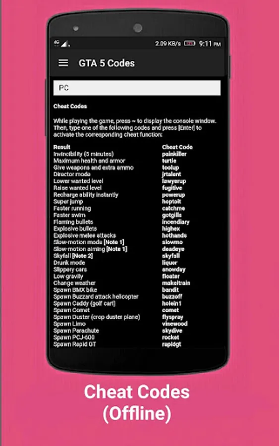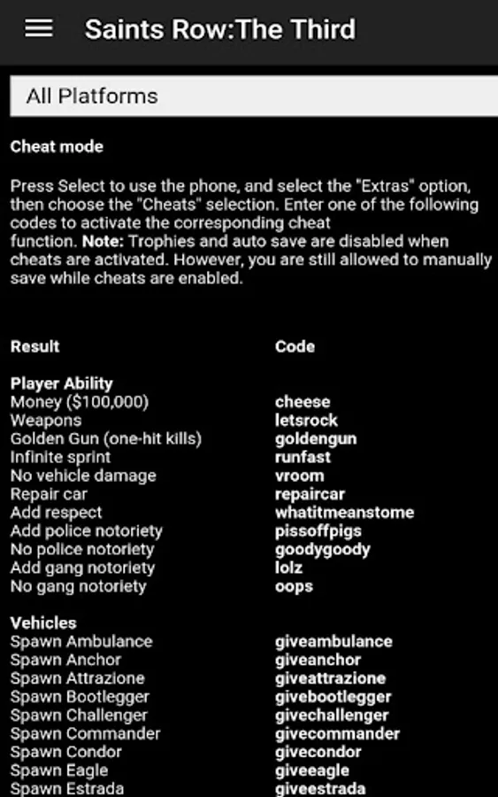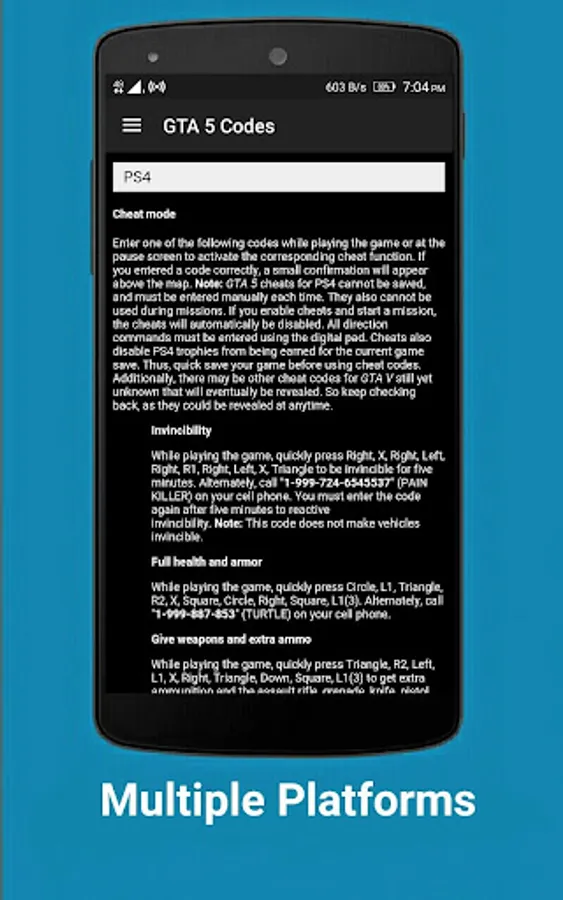 Cheatbook offers you the cheat codes & cheatsheets required to unleash some hidden features of your favourite games and to complete them in an easier way with loads of fun. Its pretty simple to use the app. Pull the drawer from left and select your game from the specified category,scroll down until you find your platform (PC,PS4,PS3,XBox One,XBox 360,Wii).