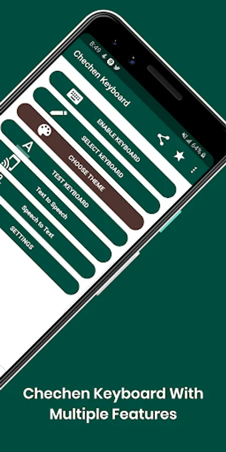 Chechen Keyboard by Infra will allow you to type in your own native Chechen Cyrillic ( нохчийн мотт ) Language and also in English text with the most attractive emojis