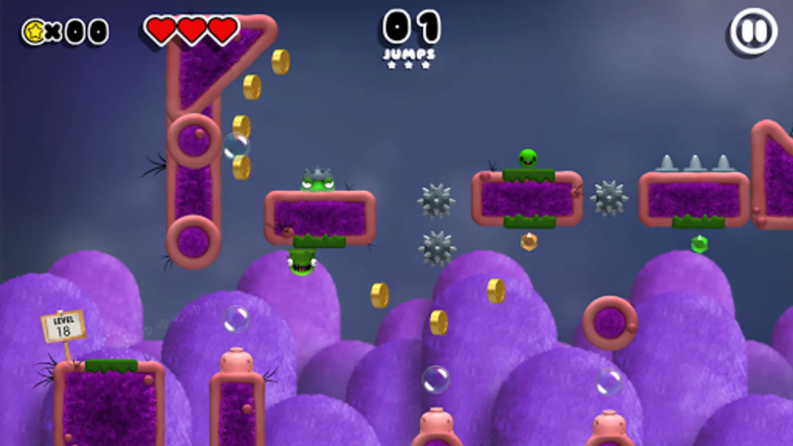-Easy to learn, hard to master, earn stars by making the least jumps to finish the levels