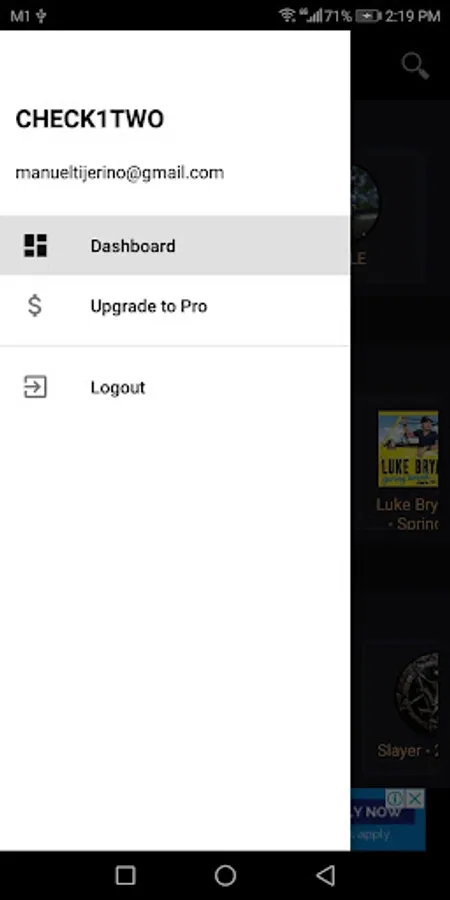Check1Two Jukebox app allows free music streaming from upcoming artists and paid music streaming from popular artists featured on check1two.com. Musicians that upload their music to check1two.com will appear in this app dynamically. The music selection is interactive, so you can pick what you want to listen to. When you select a song, the current song will stop playing and the new song will start playing. You can play music in the background while using other apps and music will stop when you get a phone call, and resume after your call ends. There app also has background music playback to save battery, and has bluetooth controls, notification and locked screen controls to skip, go back, pause and play songs. You can search for artists, albums and tracks and play entire albums. The pro upgrade gives access to premium content, and less ads.