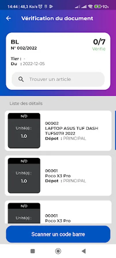 An application created to facilitate the validation of articles and vouchers by barcode.