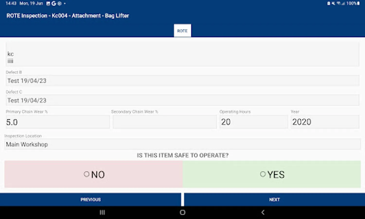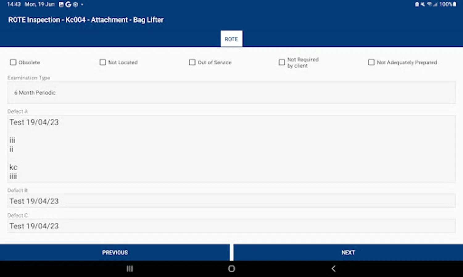 The system allows real time entry of statutory examination data and production of Reports of Thorough Examination for clients.