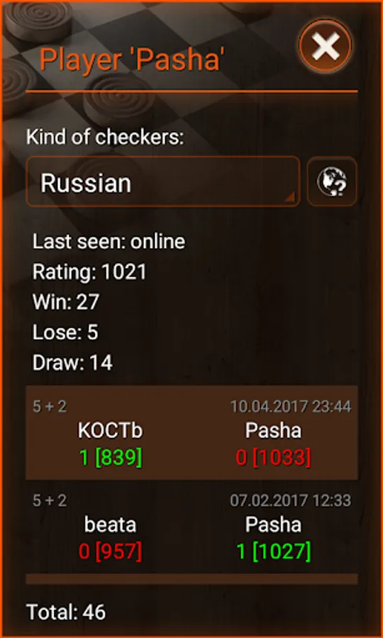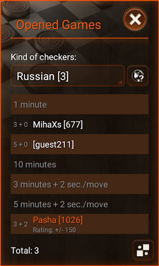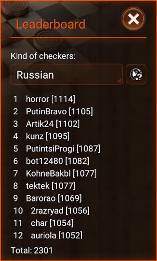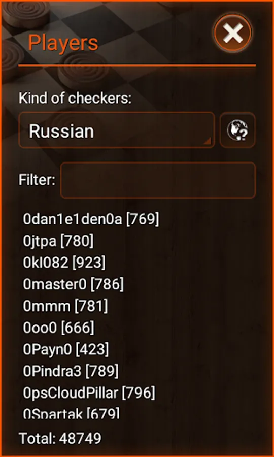 * Supported kinds of checkers: 80-cellular, Argentinian, Armenian, Brazilian/German, Canadian, checkers/American, corners (12 draughts), corners (9 draughts), croda, crowded, Czech, diagonal, Filipino, give-away, gothic, Greek, international/Polish, Italian, Jamaican, laska, lika, Malaysian/Singaporean, pool, Portuguese, Russian, Spanish, sparse, Sri Lankian, stavropol, Thai, towers, towers give-away, and Turkish Dama