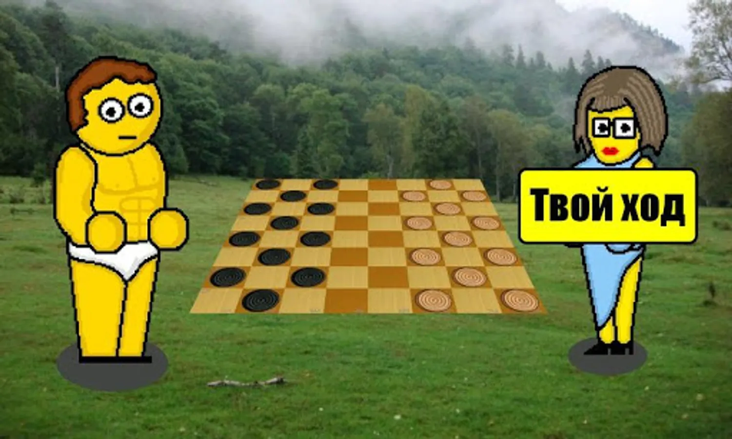 You have to fight in the classical Russian Checkers with three computer opponents.