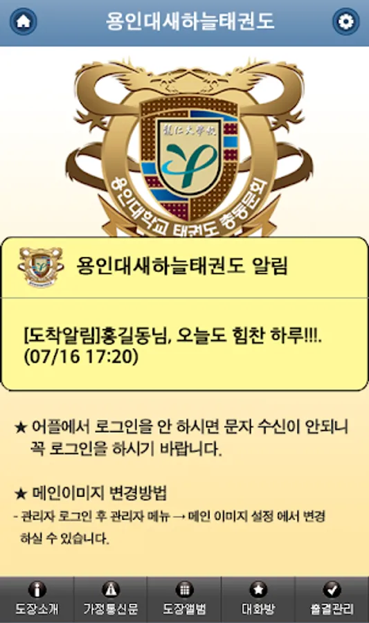 To celebrate the launch of the smart time to deploy to verify the real-time seamless communication between parents and children in attendance Painting and Coating Construction Management Applications in Yongin University Taekwondo new sky.