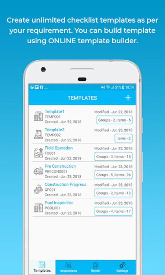 Online Checklist Builder : You can build checklist template using your laptop on bigger screen and then import to the app.