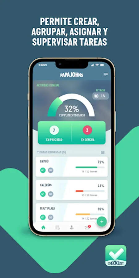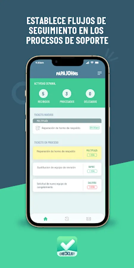 Checklist is a utility app from Papa John's El Salvador, which allows you to create, group, assign and supervise the fulfillment of work tasks of your employees. In addition, it facilitates the sending and monitoring of technical support requests from the different heads of your restaurants.