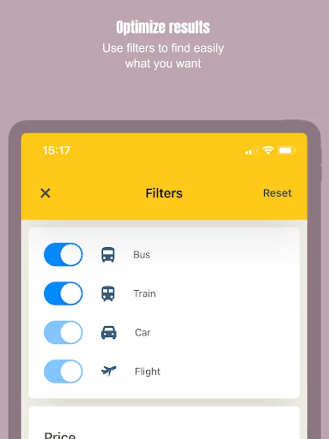 In the Filters section you have many options: select the preferred way of travel, price levels, payment methods, departure and arrival times. You can also decide to show only your preferred companies, if available, and select specific stations from where to depart or where to arrive. Set the filters how you want, and then search for the offer that suits you best!