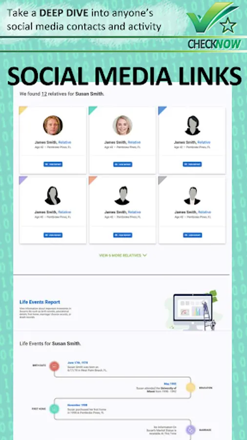 CheckNOW is the premier background check app designed to empower our users with information gathered from billions of private and public records. Now more powerful than ever, our People Finder helps you uncover the truth... prepare yourself!