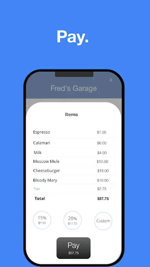 4. Select a tip amount, click pay, and leave!